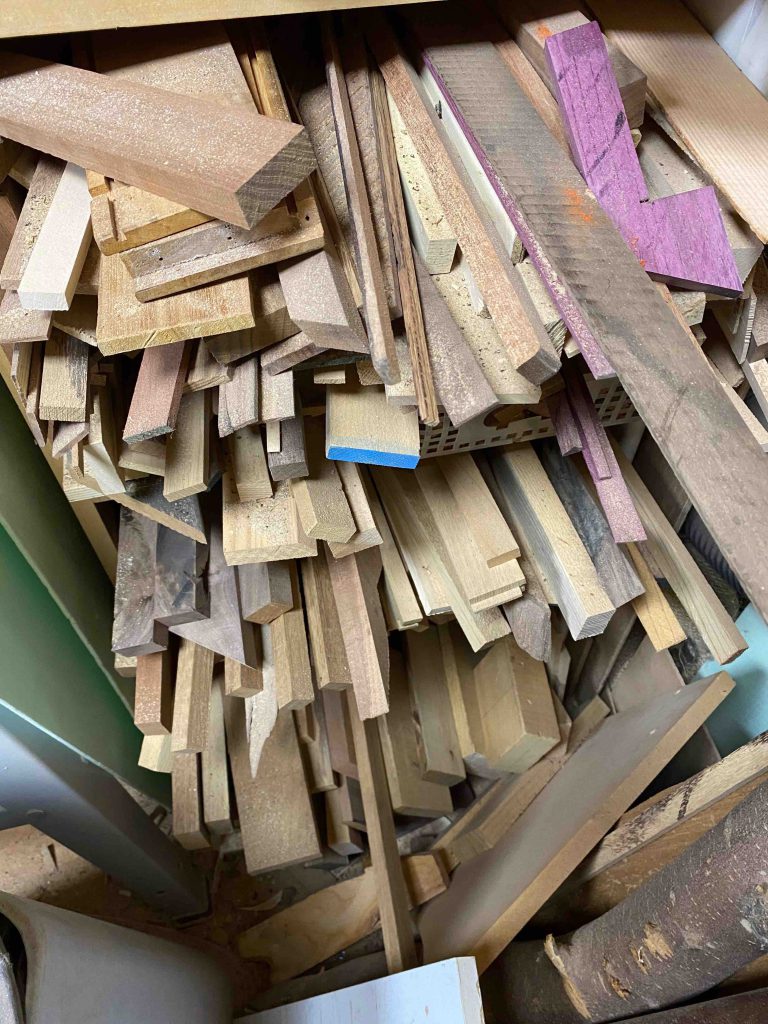 Everything at hand, and especially a lot of wood, with which you can make all kinds of things. Many different, unique types of wood, each with their own properties. It is wonderful to pick that out and play with it!
