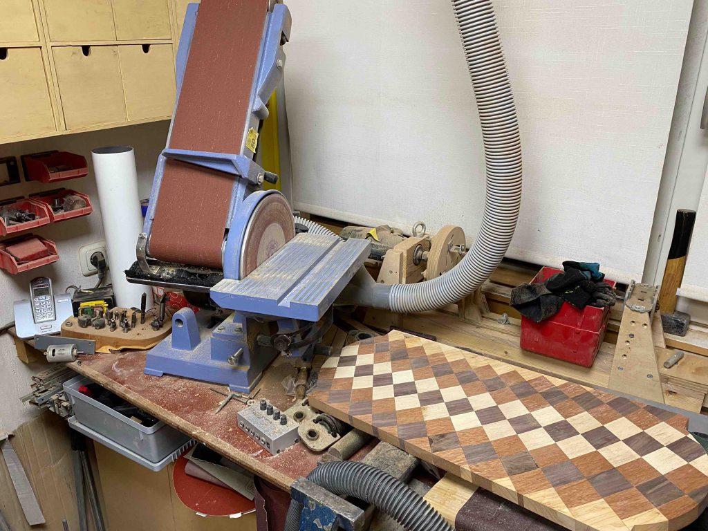 The trays and cutting boards are made here, first the wood is cut to size and planed. Then the process of “puzzling” begins, how to arrange everything by colour, shape, and grain direction.