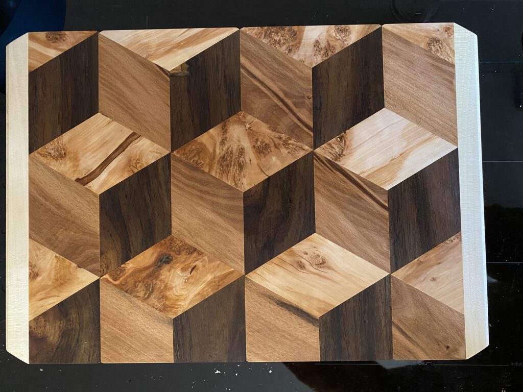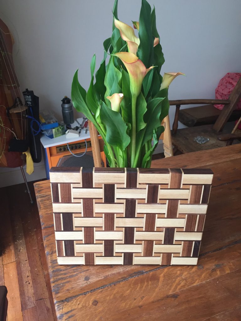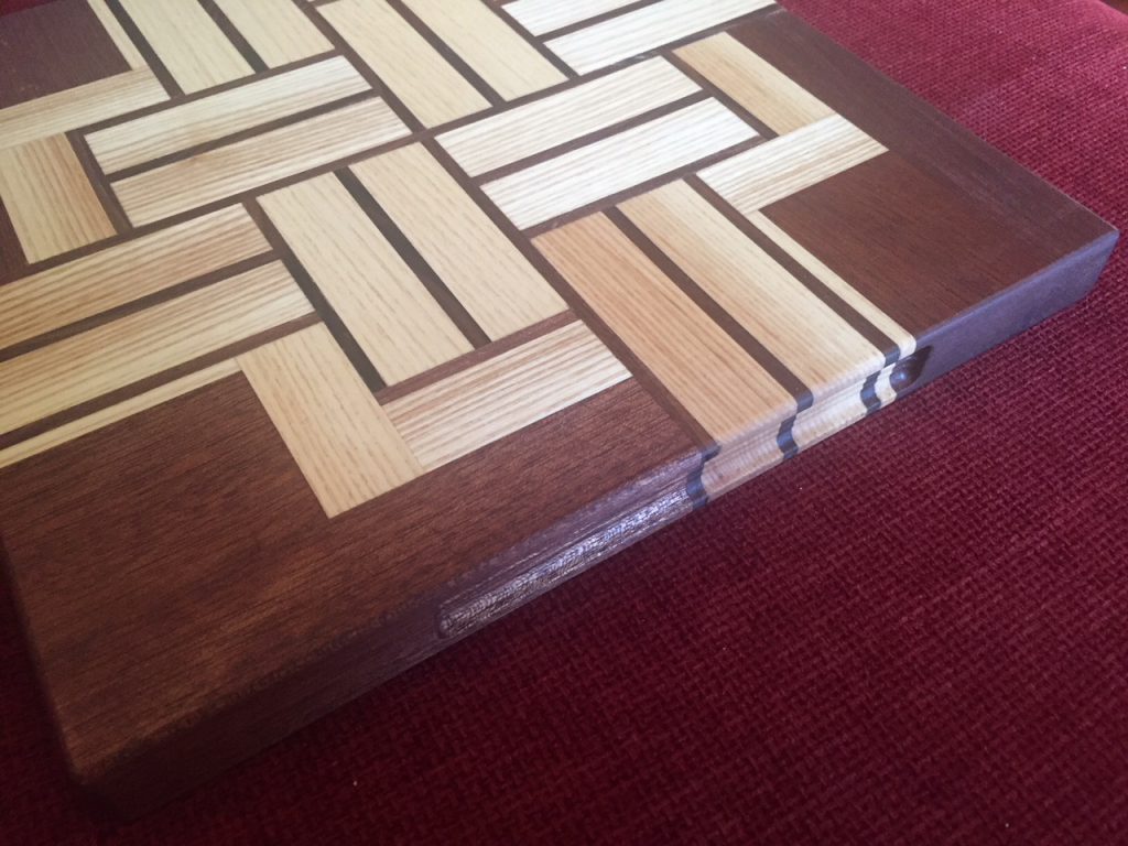 Many other artful cutting boards you see offered online are made from end grain wood, because it is an easier process. However, my cutting boards are made of “face grain wood” – this way you get a much nicer view of the wood, grain and color. In addition, cutting boards made this way are more hygienic and durable.